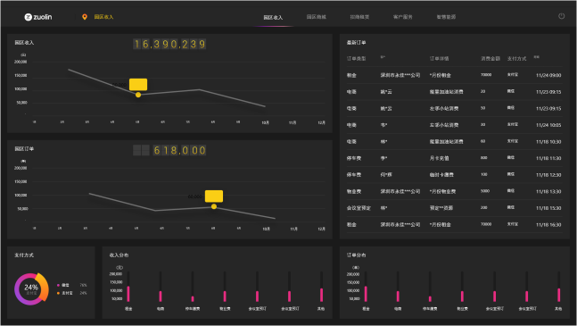 精準盤點,一手掌握各項經營數據租金、停車費、物業費、訂單分布情況等